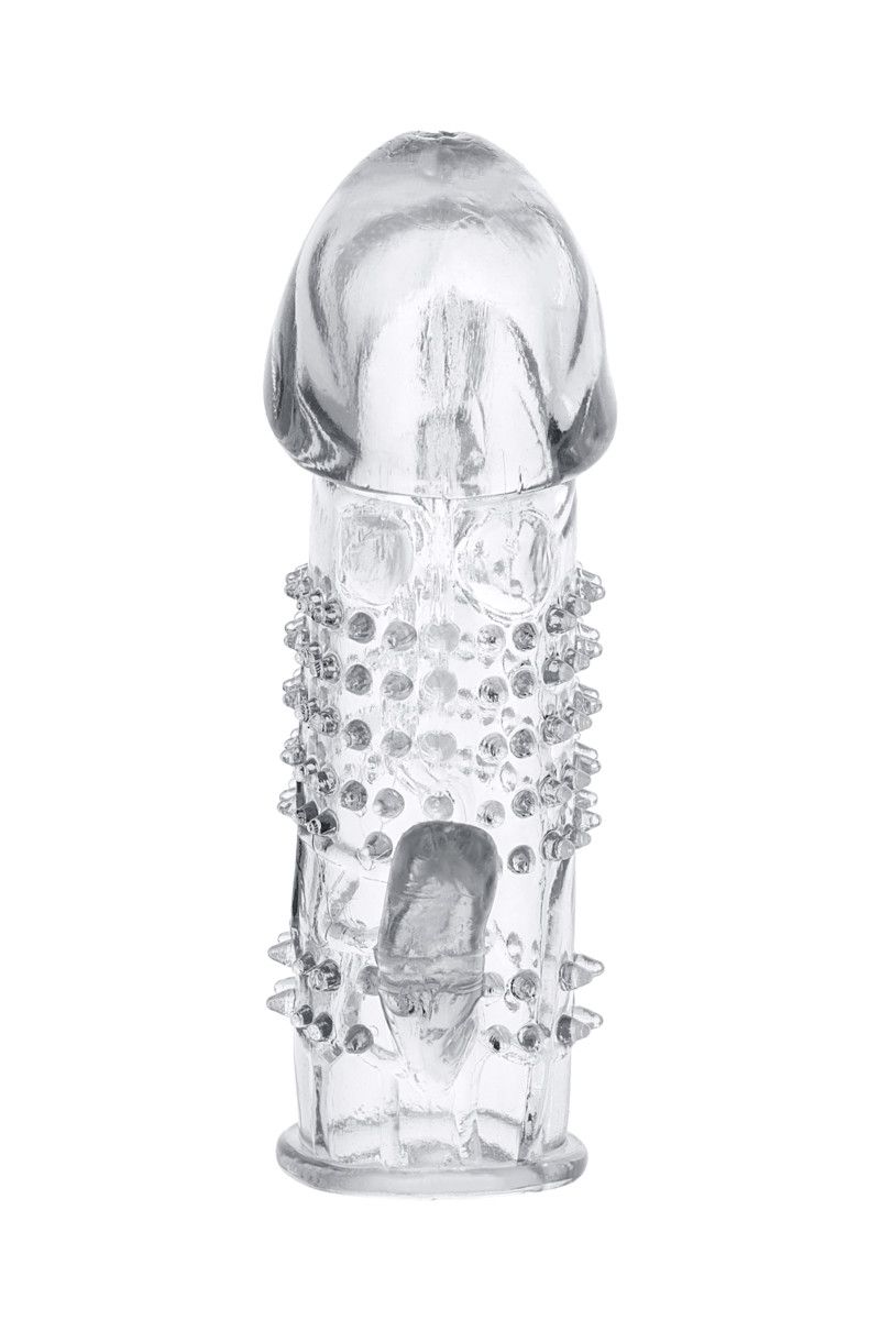Хоть наденет эту прозрачную насадку мужчина, сексуальное удовольствие получит женщина. Ведь именно она сможет наслаждаться с виду колючими, но очень мяконькими шипами, опоясывающими ствол пениса. А также небольшим отростком, обеспечивающим массаж клитора при каждом толчке.