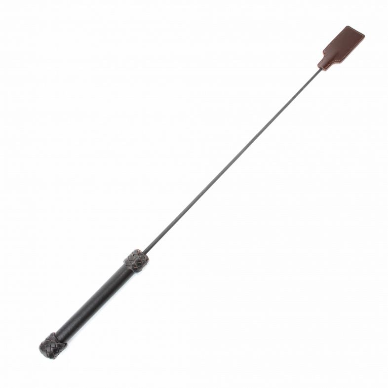 Стек сделан из прочного сердечника с оплетением из кожи. Наконечник в виде хлопушки из кожи для осуществления ударов. Также на ручке присутствует кожаная петля, которая позволяет закрепить стек при проведении наказания партнёра. Девайс отлично подходит для БДСМ игр. Мягкая и гибкая конструкция позволяет избежать повреждений тела даже при сильных ударах. Хлопушка сделана из подшитой кожи, рукоятка стека жёсткая, обшита кожей. Размеры хлопушки - 11 х 4 см.