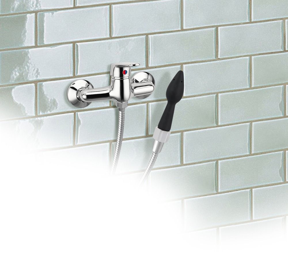 Анальный душ Rear Splash который сделан из черного силикона для анального использования. Интимный душ (с винтовой резьбой) может быть привинчен к душевому шлангу. Образный штекер конуса имеет 5 отверстий (по одному на конце пробки). Рабочая длина - 12,5 см.